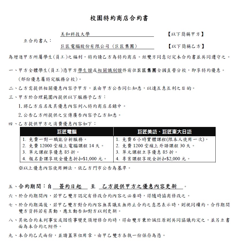 巨匠電腦股份有限公司(適用教職員工證、學生證、校友證)